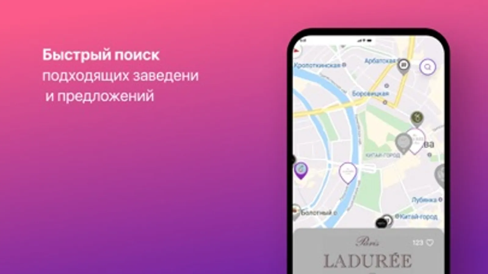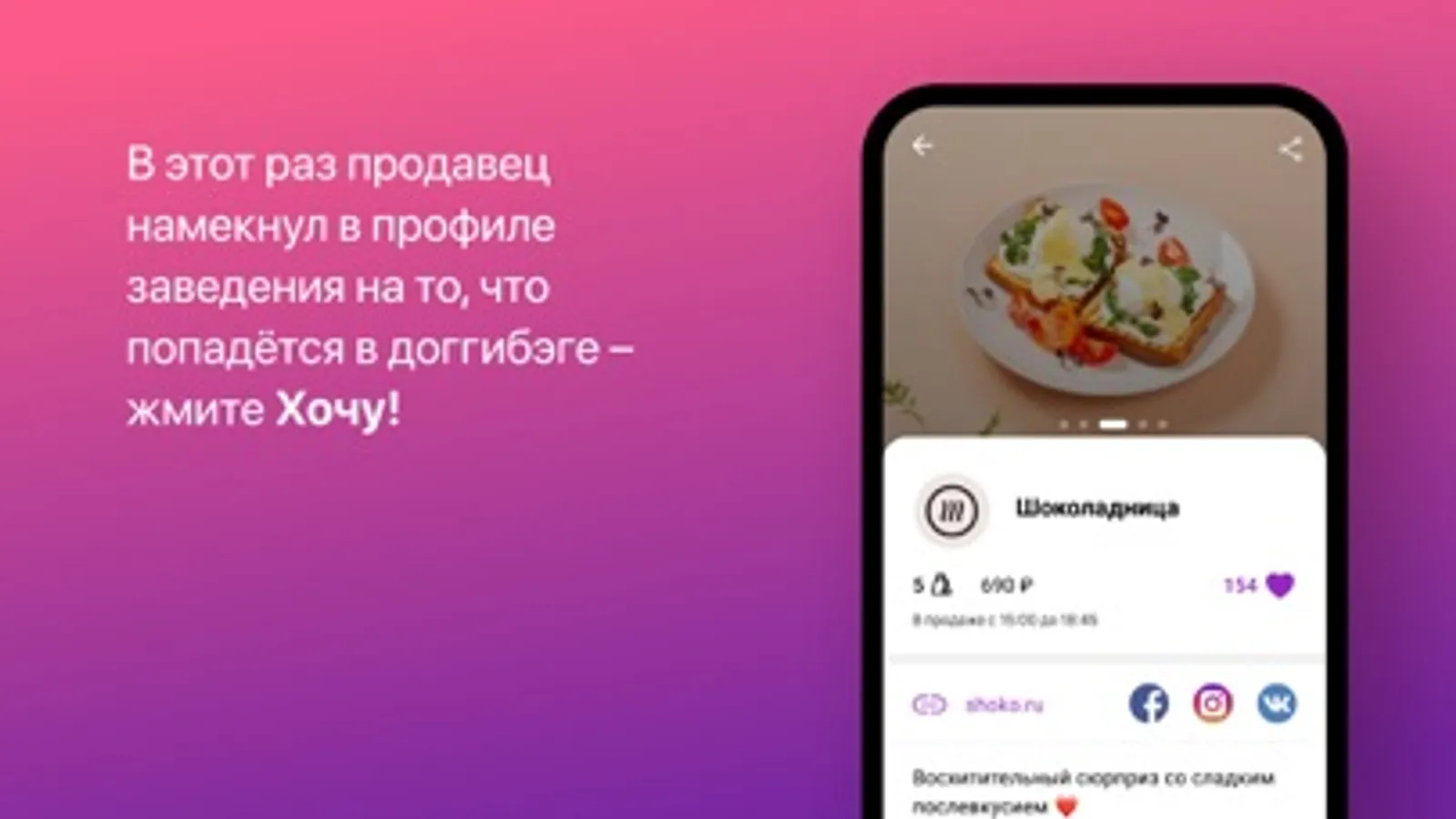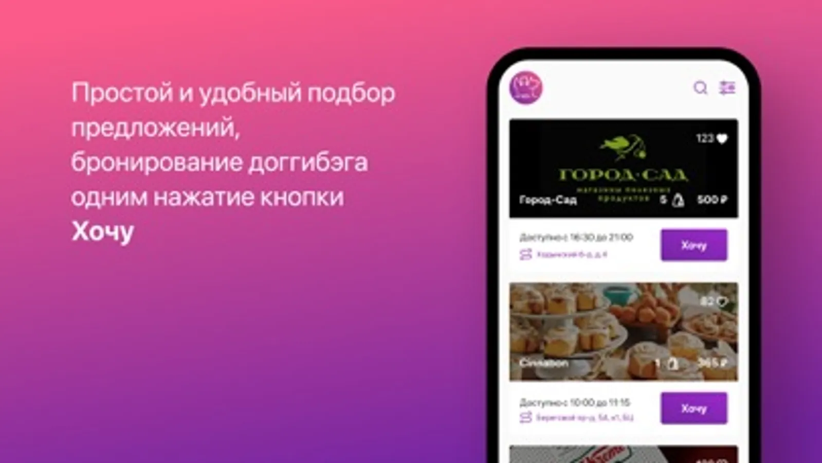 Скачивайте бесплатно, смотрите, что есть в подходящих для Вас времени и месте, жмите кнопку "ХОЧУ", покажите экран с кодом на кассе и забирайте набор в понравившемся заведении с огромной скидкой