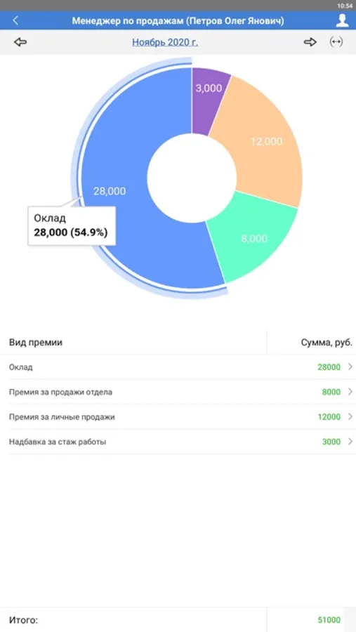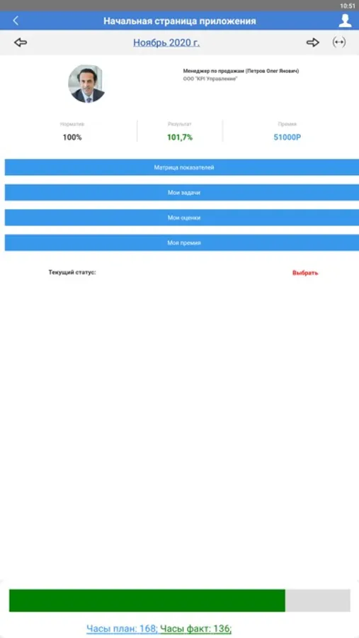 • Видеть текущую премию, которая зависит от результативности сотрудника.