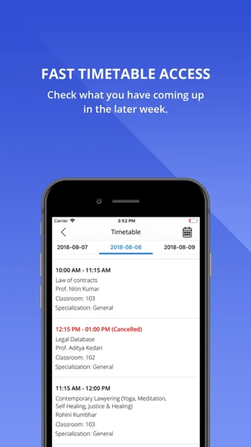 Changing class schedules not communicated efficiently? No more! While this system ensures that all the timetables are accessible by the students all the time, any change in the same is instantly communicated to them through instant notifications. The excuse of not knowing and being late to lectures will not work anymore.