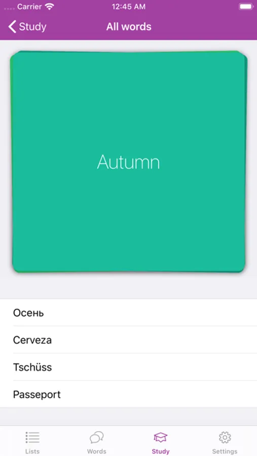 Enter new words that you want to learn, optionally organize them by using lists and start flipping cards, playing quizzes and checking your grammar. Just relax and play any time you have a free minute.