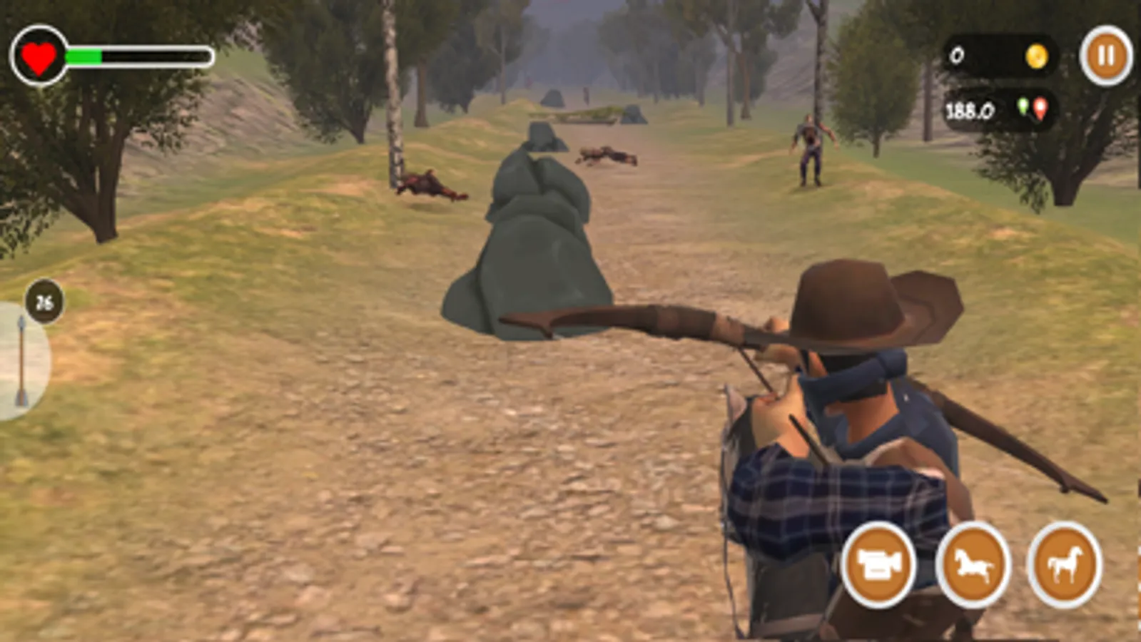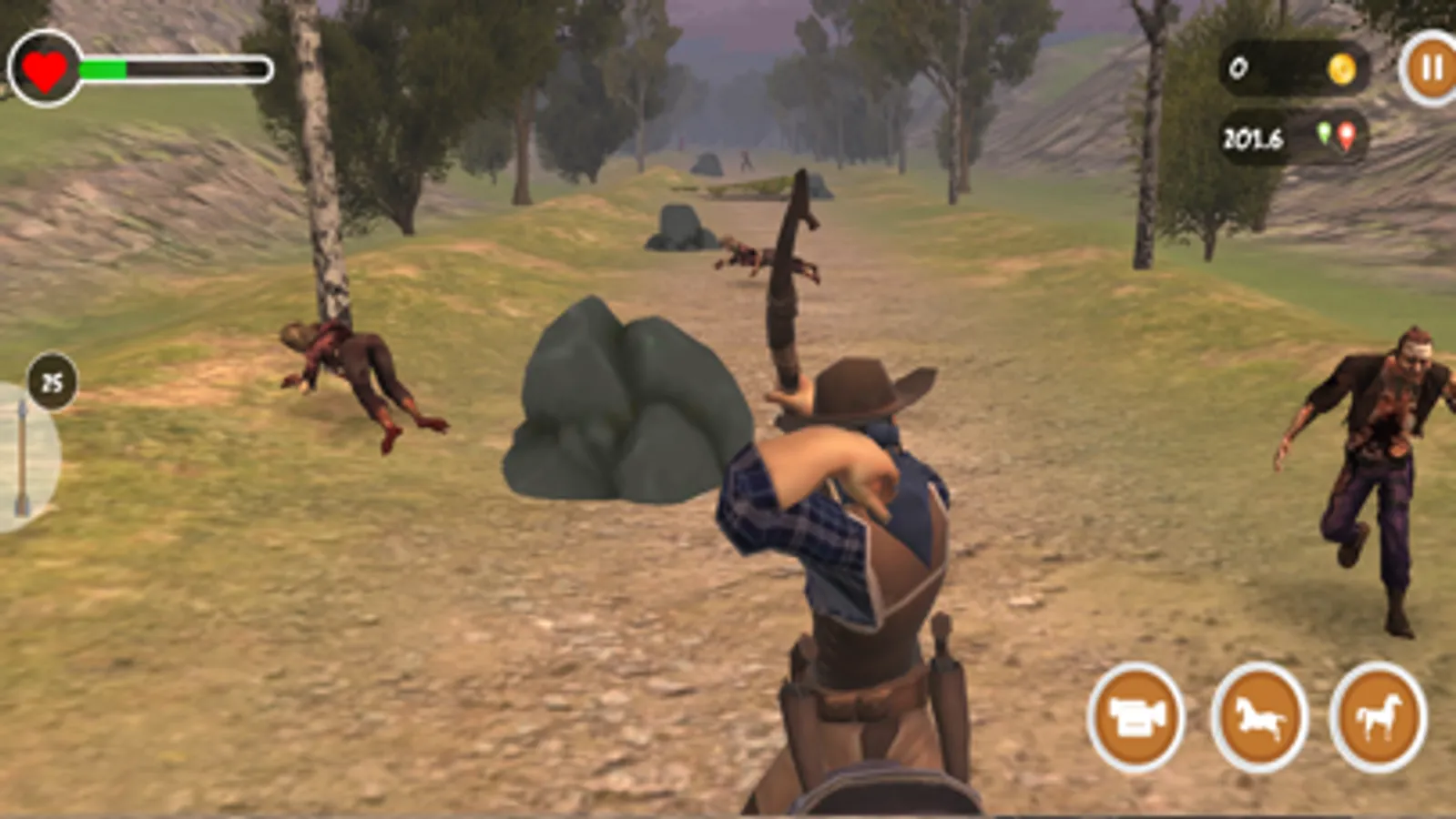 Immerse yourself in a full hero character with different weapons, guns, bow & arrow, hammer, axe, and sword in hand and ride across the hilly terrain. You can also choose your rider and horse, which involves the in-app purchase. It's you the threat against the Zombies! Survival is the only key in this action-packed combat.