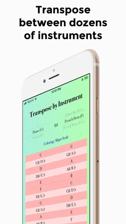 — Transpose between dozens of instruments in different keys using the Instruments tab, including clarinets, french horns, and trumpets