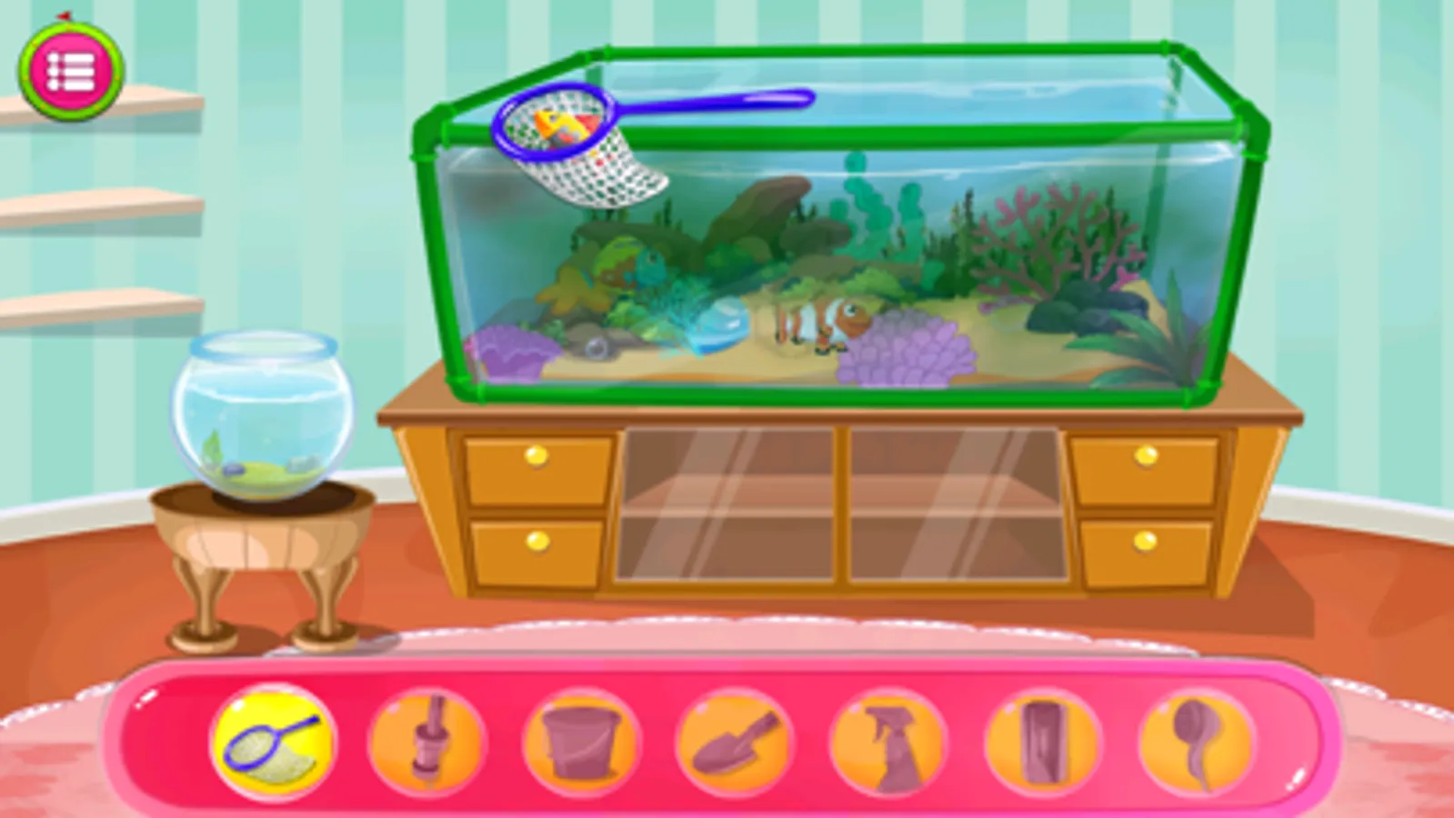 هيا نهتم بحوض الأسماك الجديد الخاص بنا .. حيث يتوجب علينا القيام بكل ماهو مرتبط به من تزين وترتيب وتنظيف