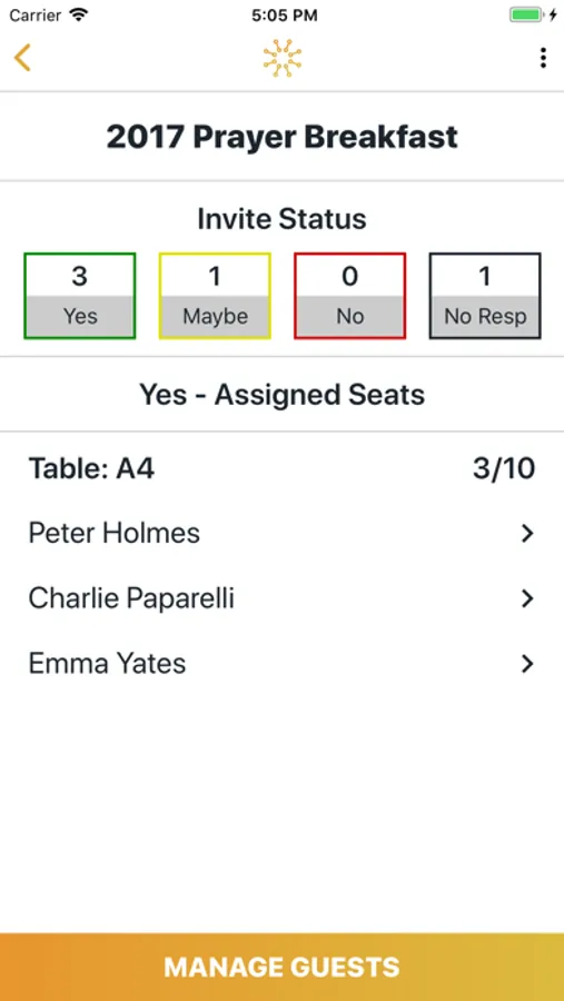This app is designed for table hosts to manage and invite their guests to the Atlanta High Tech Prayer Breakfast (HTPB). It allows the table host to: 1) Create a list of potential invites by accessing the host’s phone contacts or through manual input. 2) Send and resend invites to desired guests on the host’s guest list. 3) Gives a clear summary status display of the host’s invite activity and responses. 4) Includes the capability for hosts with multiple tables to manage seating between tables.
