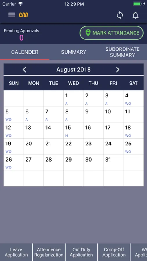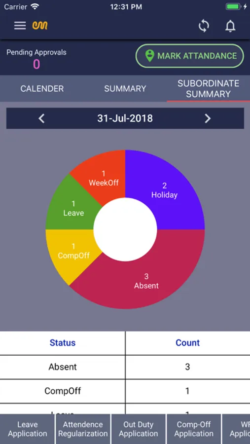 * Depending upon the user roles & privileges provided, employees can View their attendance status & statistics