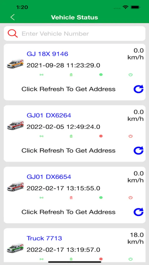 2. After Successfully login user can view their vehicles status that includes (Running, Stop, Ideal, Disconnected).
