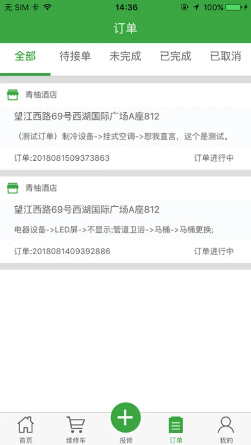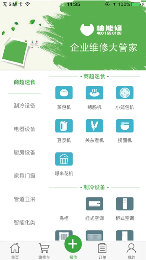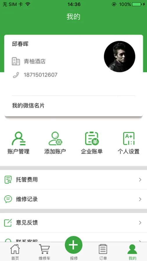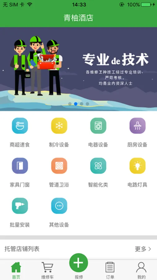 用于维修托管商户报修、查看订单、账单、维修情况、地图定位等功能