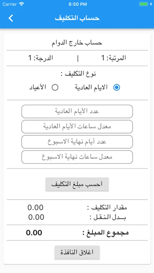 * إتاحة إمكانية حساب خارج الدوام وتكليف العيد.