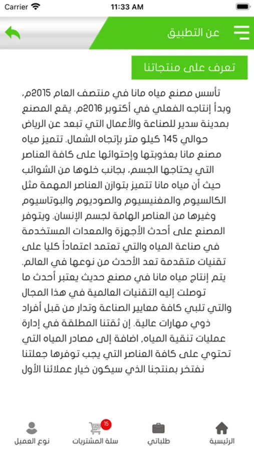 Located in Sudair Industrial City, Mana Water factory has an area of more than 45,000 square meters. It is equipped with state-of-the-art equipment that is innovative in the bottling water industry.
