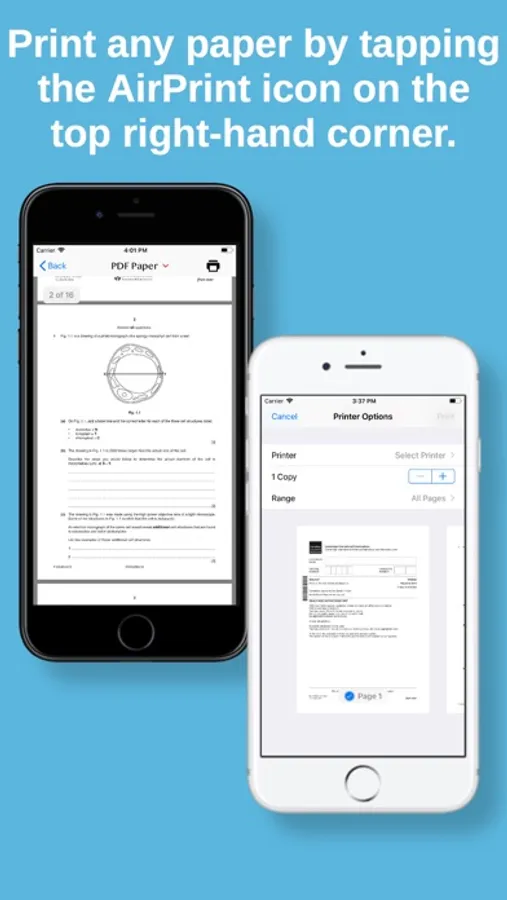 ∆ Support for AirPrint, so any pdfs can be connected to a printer to print the pdf file from within the app.