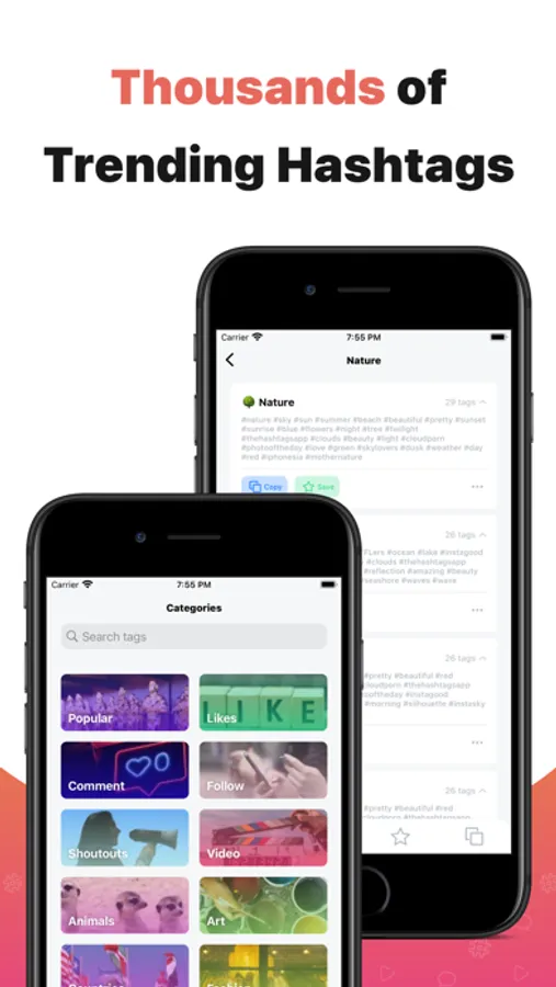 • Hashtag Categories - We offer a huge collection of the best hashtags filtered by categories and hand-picked by us.