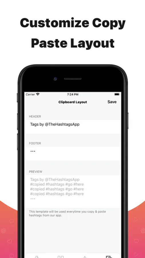 • Clipboard Layout - Customize the copy-paste layout so your tags always look the same when you paste them on social media.
