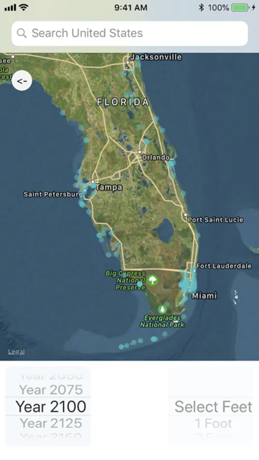 This app has most of the coastal elevation data in both the east and west coast. The extensive amount of data contains every coastal county in the United States. Each data point includes latitude, longitude, and elevation. Using the National Oceanic and Atmospheric Administration (NOAA) future sea level predictions with the above coastal data, the app can be configured to show flooding predictions.