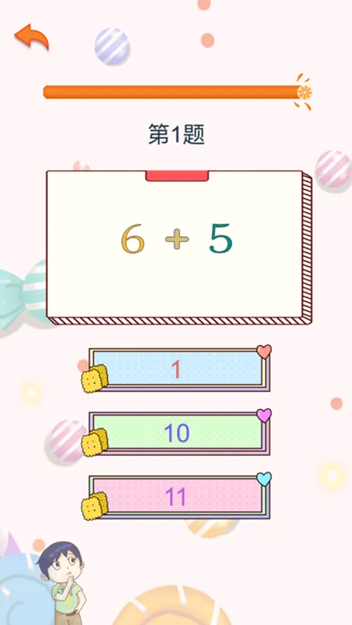 1.选择题:提供3个选项 选中其中一个答案来回答题板中的算式。