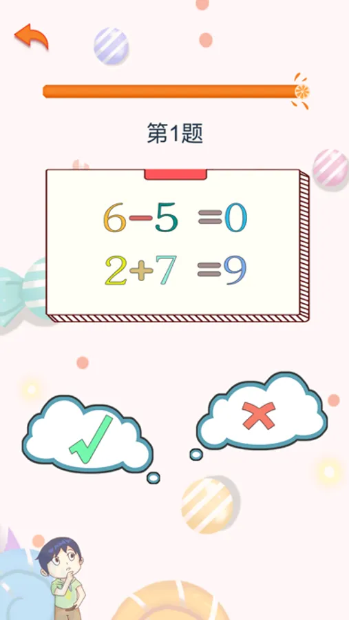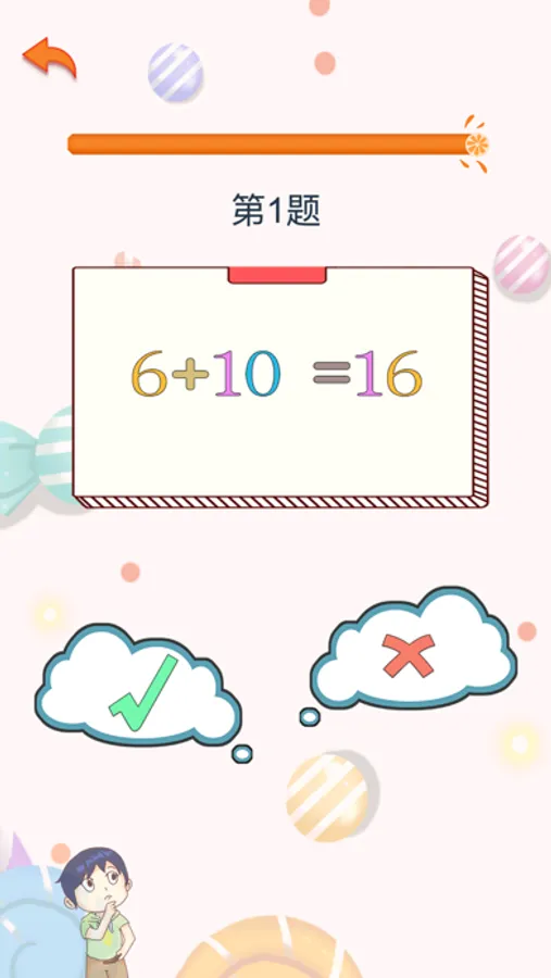 2.判断题:根据题板中的算式得数来判断这一题是正确还是错误,正确点击√,错误点击×。