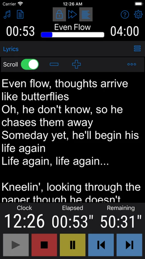 * Auto-scrolling lyrics and file attachment display for charts, notes, etc.