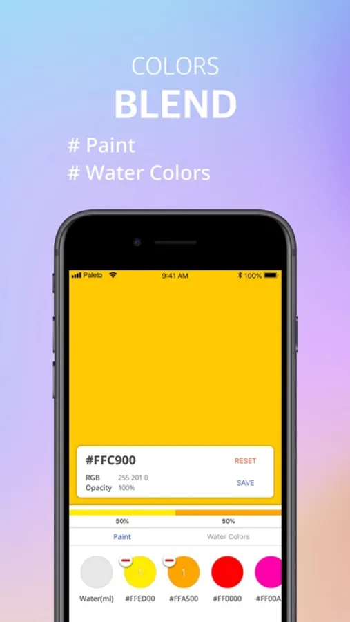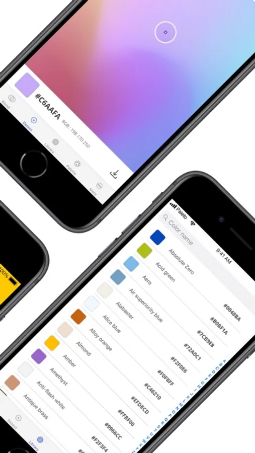 Paleto is a tool for creating beautiful colors. - Blend (Color Mixing), Detect, Library, Palette