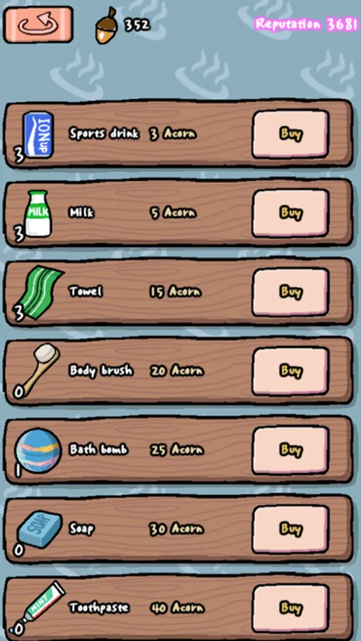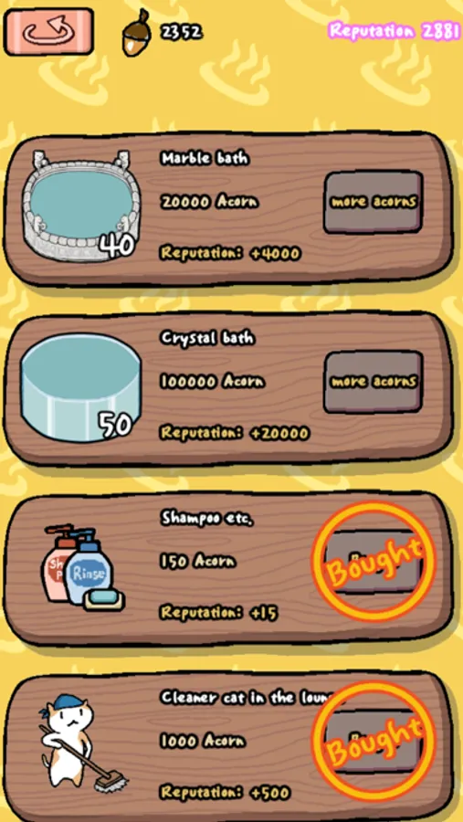 - Various facilities in lounge will help you increase your reputation and earn more acorns.