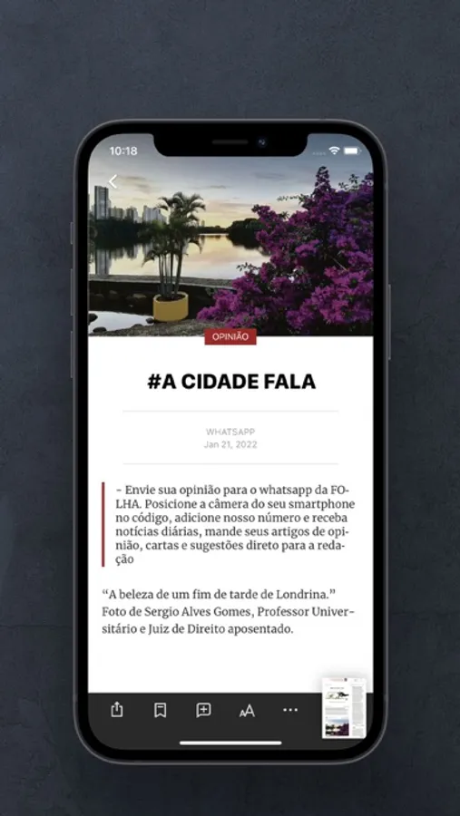 O aplicativo da Folha de Londrina Digital oferece uma série de recursos exclusivos que tornarão sua experiência de leitura ainda mais interessante. A navegação é simples, leve e intuitiva para que você continue sempre bem informado(a). Conteúdo do jeito que você queria, para acessar quando quiser e onde quiser. Boa leitura!