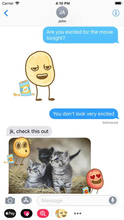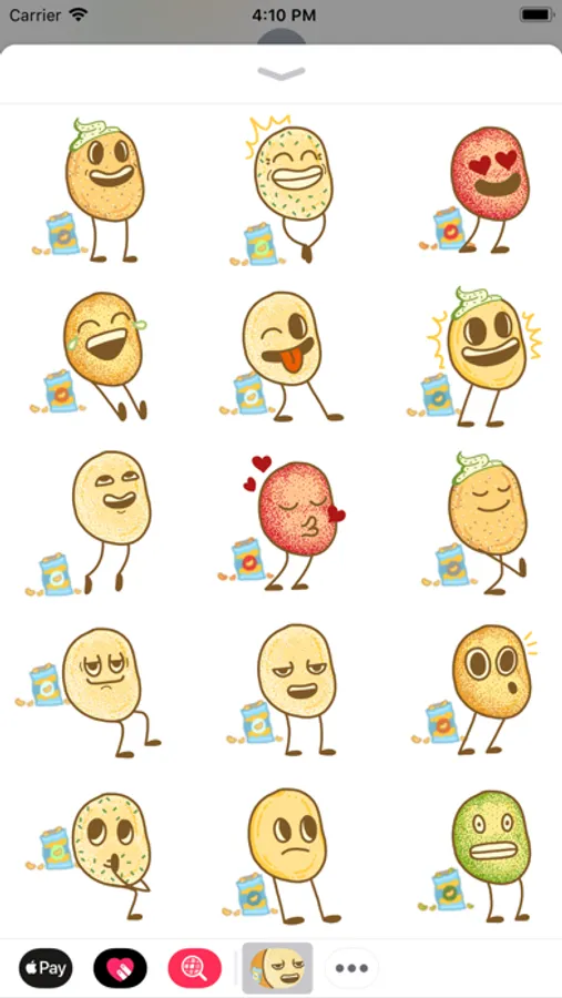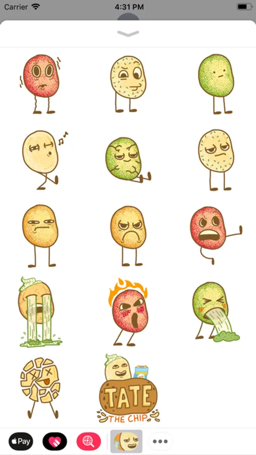 Tate has 30 different expressions, with the option to have him appearing with or without his home: a cute potato chip/crisp bag! That brings the total number of stickers to over 50.