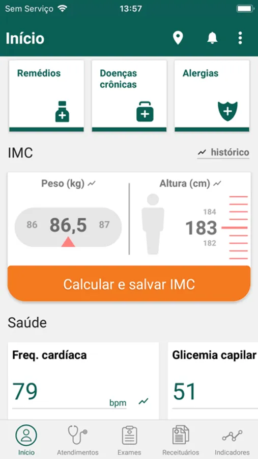 - Gráficos personalizados de acompanhamento de exames;
