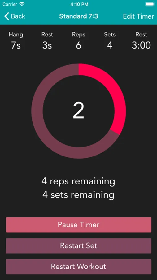 HangTime is a simple hangboarding app that allows you to add hangboarding workouts, customized by hang time, rest time, reps, sets, and rest between sets. You can pause your timer, restart the set or workout, add new workouts, and delete old workouts.