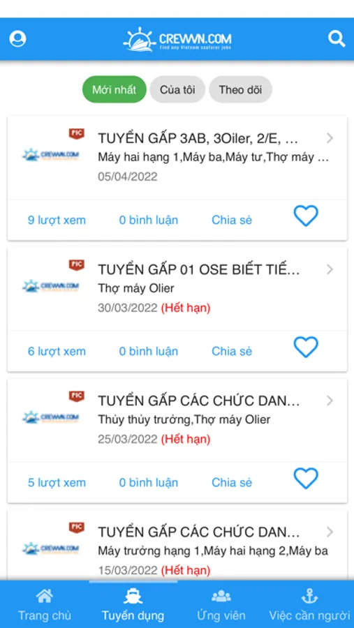 CREWVN cung cấp cho bạn tất cả việc làm thuyền viên tại Việt Nam từ :