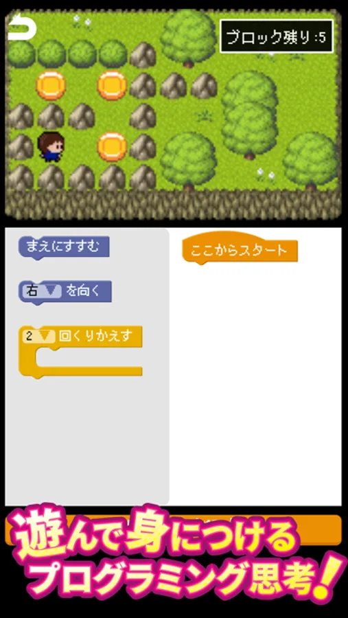 楽しみながらプログラミング的思考を身につけるゲームです。