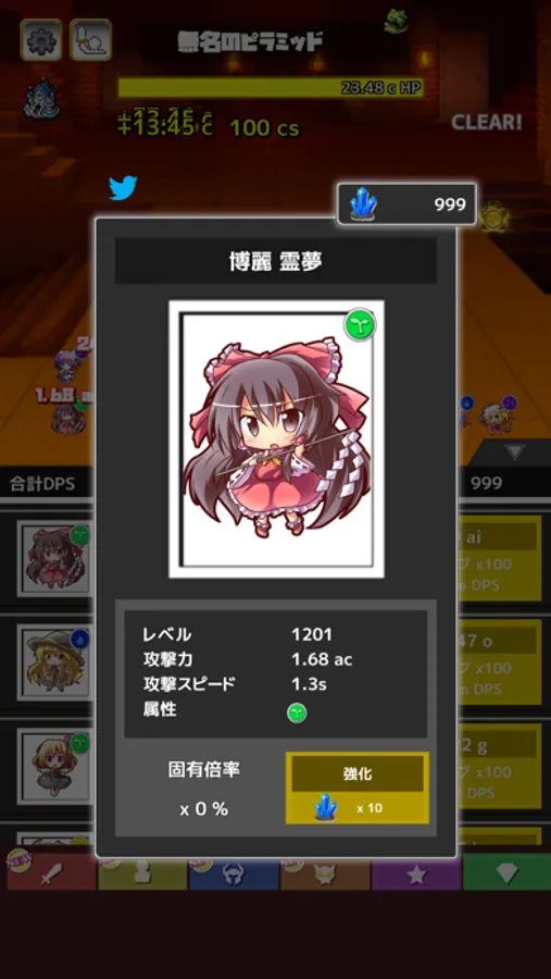 放置もできる2DドットRPG風クリッカーの東方キャラクターバージョン!!