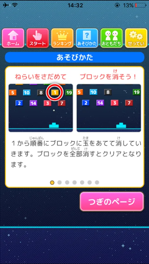 ランダムに並んだ数字ブロックを1から順番に消しながら数字を覚える知育アプリです。