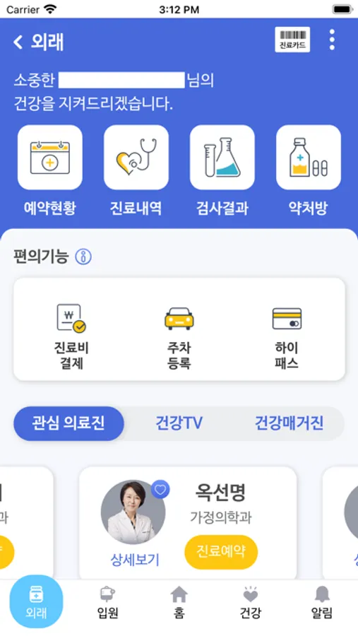진료비 수납을 모바일에서 편리하게 결제 할 수 있습니다.