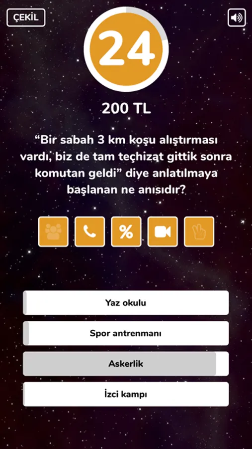 - 5 joker hakkı (seyirciye sorma, telefon, %50, video, çift cevap)