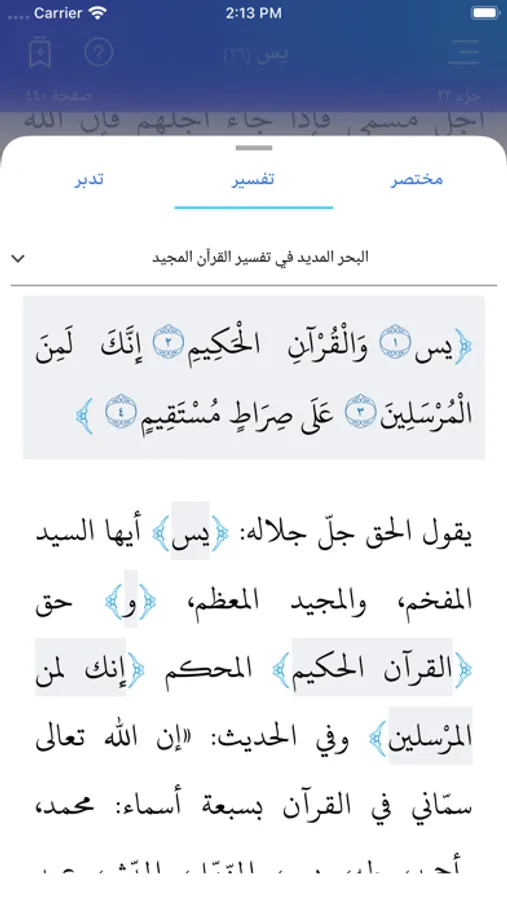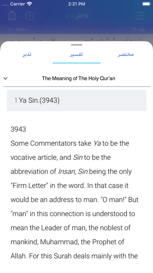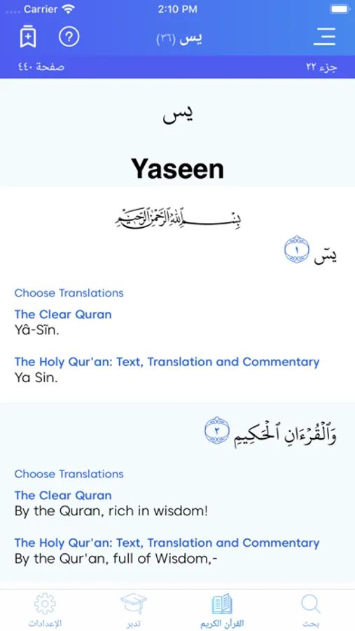 You can choose from 25+ tafsirs, 112 translations and 3 dictionaries. You can read multiple translations, tafsirs or dictionary definitions at the same time.