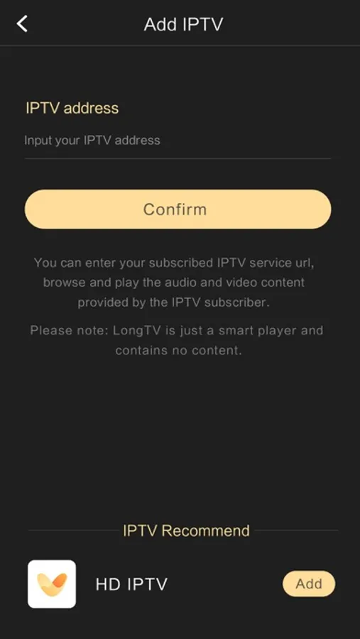 LongTV only provide software solutions to our global users. You can generate the icon and enjoy your viewing by inputing the urls of your own subscriptions from IPTV providers. LongTV respects the Intellectual Property, but we are not liable for any misuse for streaming by any third parties.