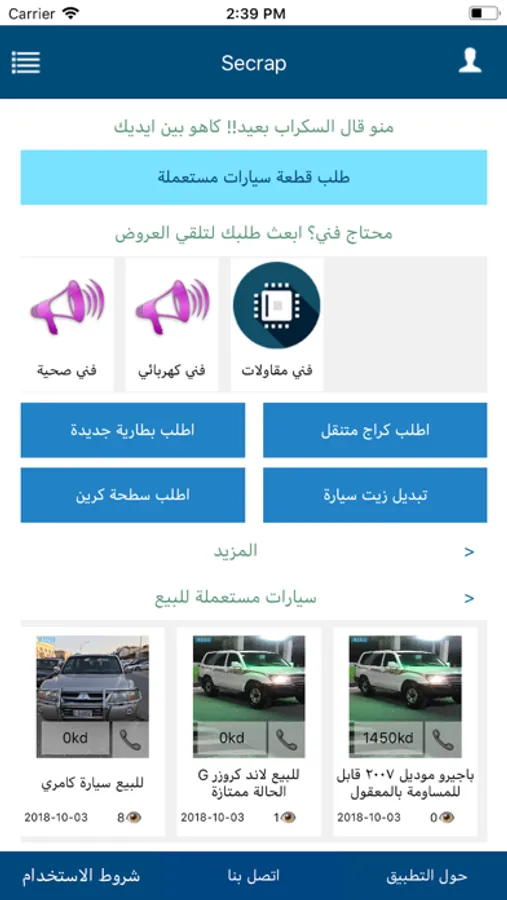 The Scrap application provides you with a lot of car services wherever you are, the service of providing used car parts from scraper, mobile garage services, new batteries, bins, oil spare parts, flatbed and many other services that you can explore through Scrap application