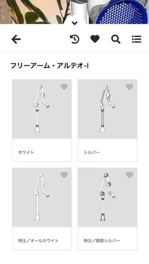 カラーバリエーションや実際にアームが動いたときのイメージも確認できます。