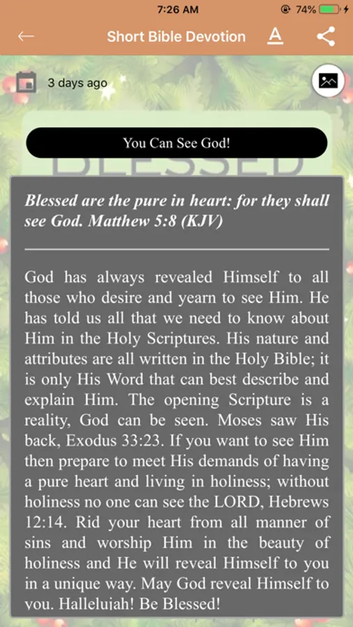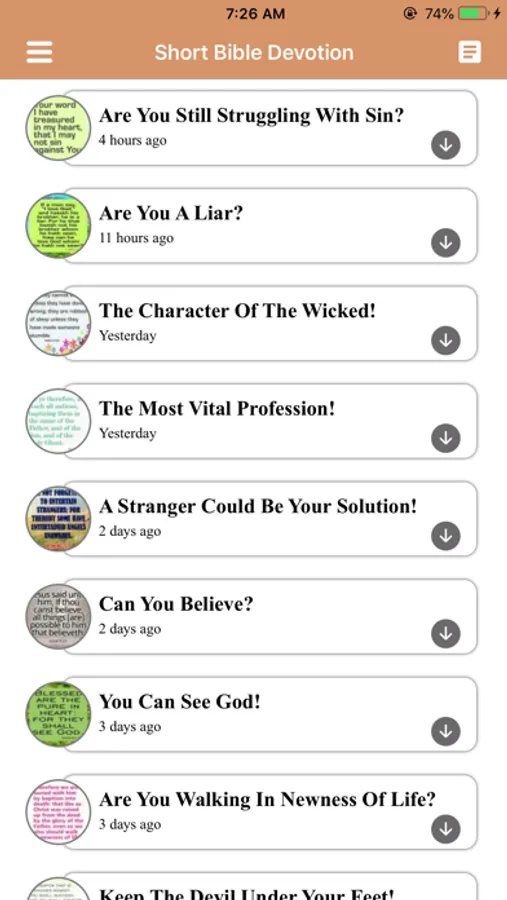 Get your daily devotion which is short and straight to the point. This daily Bible devotion helps you to grow in Christ as a new creation in the Lord. The Bible is great. Download your daily devotion or online bible devotion for use.