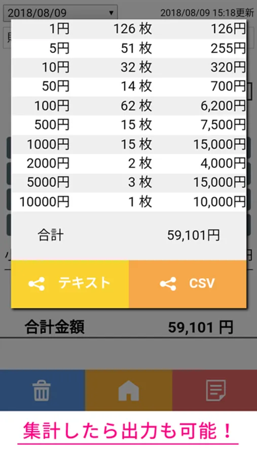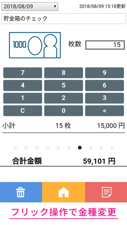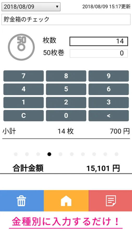 ・金種別に枚数を入力するだけで、金種別と合計金額を計算