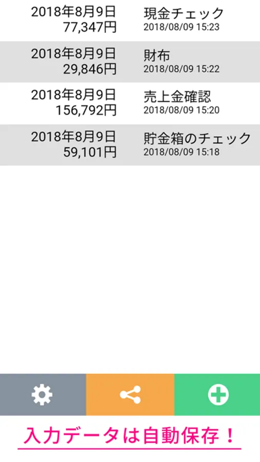 ・入力するたびに自動保存。メモも一緒に記録できます。