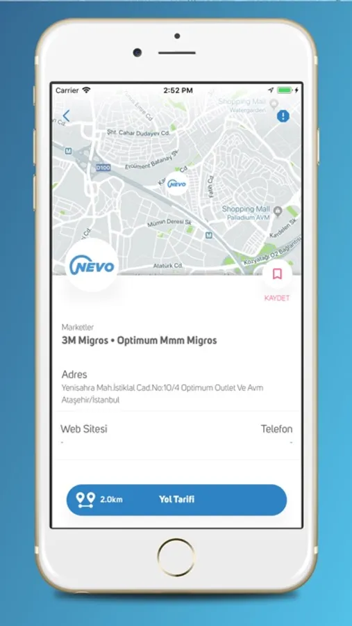 Nevo ile şehri daha hızlı ve daha kolay keşfedin ve gezin. Size en yakın market, giyim, kargo şubesi ve daha birçok kategoride 2500 den fazla markanın şubelerine erişin. Alışveriş modu sayesinde favori markalarınızın bir arada bulunduğu cadde ve Avm’leri anında haritada görüntüleyin. İhtiyacınız olduğu anda size en yakın nöbetçi eczane ve atm’ye erişin yada sınava gireceğiniz okulu bulun.