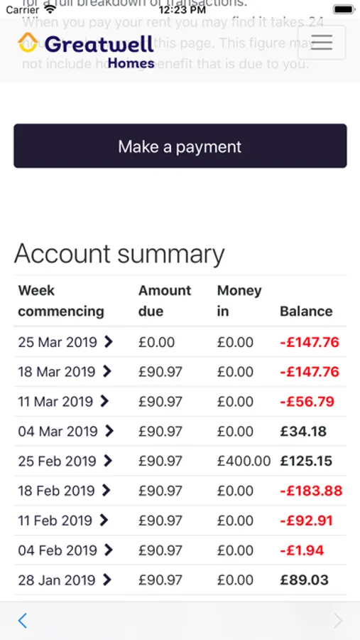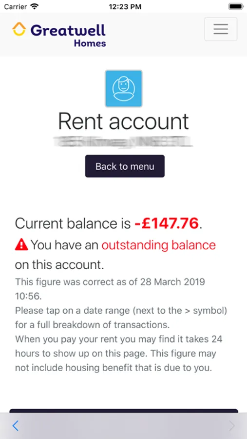 Our self-service portal app lets you manage your housing tenancy with Greatwell Homes. You can do things like request a repair or inspection, report anti-social behaviour, check your account statements and mini statement, pay your bill, and much much more.