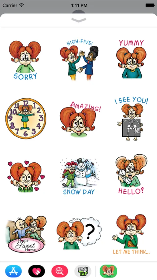 Make messaging fun with Jazlyn J! From school to home, from friends to family, let everyone know what's happening with these creative and expressive character stickers! This loveable character is based on the Jazlyn J series of books, written by Renná Bruce, where every story takes you on an adventure that you just might be able to relate to. Life is NOT perfect but how you choose to handle it makes all the difference in the world. Jazlyn J is hoping to brighten your day! Her favourite colour is green, her favourite sports are hockey and soccer, she loves reading and collects fuzzy character slippers...she is learning as she grows! Kids of all ages will love the Jazlyn J sticker pack. Illustrations by Janet Shultis and Robin Oakes. www.jazlynj.com