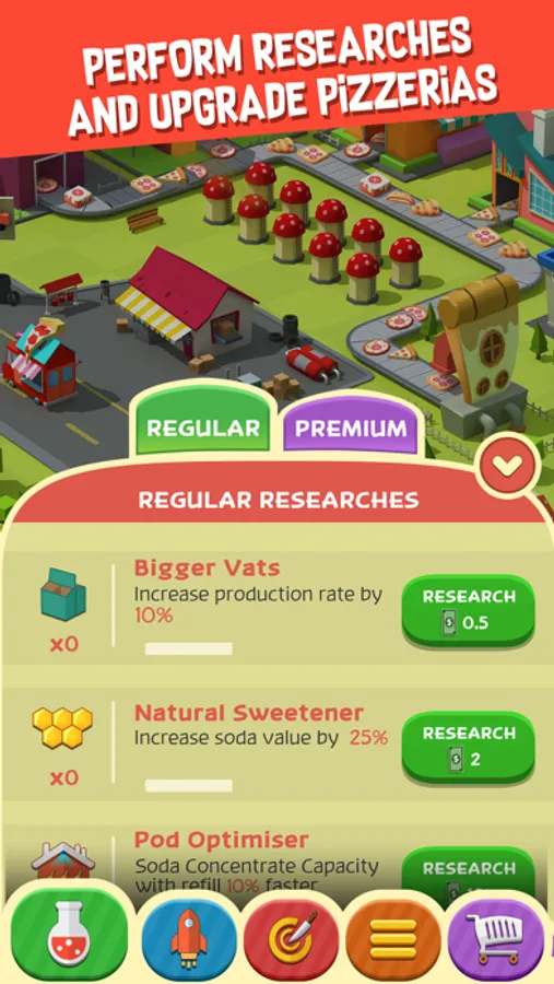 An incremental clicker game at its core, Pizza City Tycoon uses many elements from clicker and simulation games that give it a one of kind feel. Enjoy the 3D graphics and a delightful simulation of a cluster of pizzas. In addition to choosing your investments wisely you must also balance your resources to ensure a smooth running and efficient pizza city.