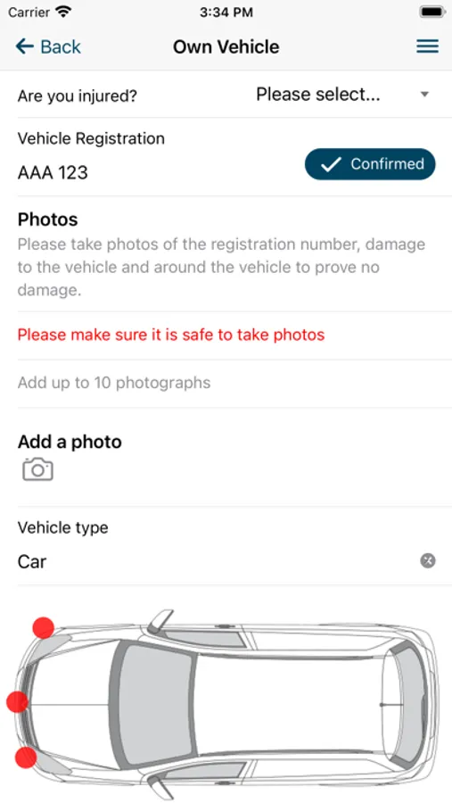If an accident occurs, use the app to collect as much information as possible including GPS location data and images from the scene. This will be provided directly to your insurance broker to handle your claim.