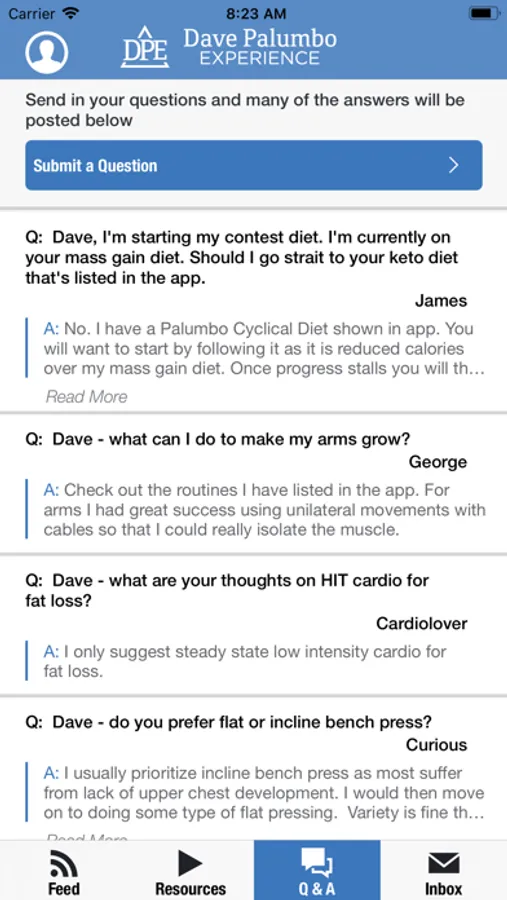 Educate yourself with the most relevant information in the physique sports industry today. Dave reveals his diets, performance enhancing supplement protocols, and training methods he uses to create pro-level physiques. The app not only gives you access to Dave’s coaching protocols and the ability to ask him questions, but it also provides you with exclusive Dave Palumbo content and daily interaction with Dave himself in a members-only social media atmosphere.