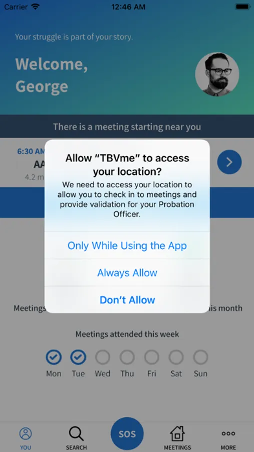 TBV (Trust But Verify) is the app that helps you get on the road to recovery. Find meetings near you, including Alcoholics Anonymous, Narcotics Anonymous, and Smart Recovery. Check into meetings you attend and track your weekly and monthly progress. You can even create a support team of your most trusted friends and family and reach out to them in times of need.