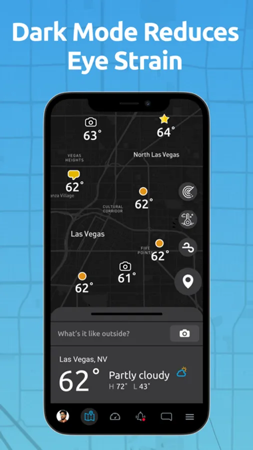 LOCAL WEATHER VIDEOS AND IMAGERY - Select the play icons on the map to view time-lapse videos from local weather cameras or select the chat bubble on the bottom menu to view your local community posts.