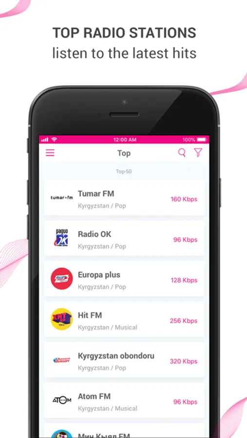 • Dynamic TOP 15 of the most popular radio stations