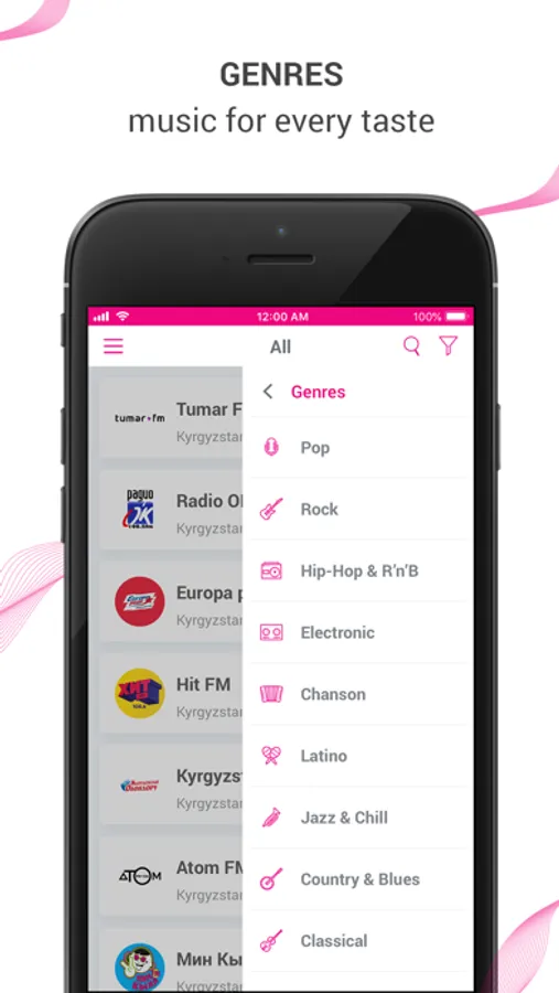 Choose online radio stations you like - R&B, Jazz, Rock, Rap, classic and others.
