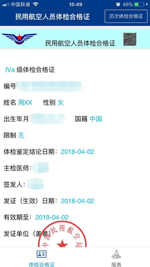 电子体检合格证APP,方便乘务员安全员在线查看体检合格证信息,体检合格证真伪验证等。APP内容包括本人体检合格证信息和个人中心模块。A